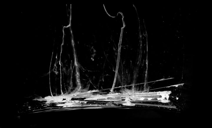 针灸的针缓缓的滑落水中,留下的痕迹形成一幅独特的水墨风景画。这件作品象征传统文化在现代社会中的现状,表达了作者对传统文化流失的忧虑。