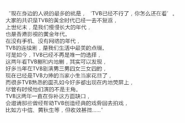 TVB的电视节目这么多年来缺乏创新,近5年来推出了多少好的节目?多是模式化生产复制拷贝,因为这样成本更低;