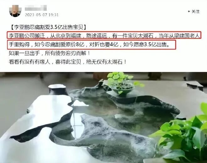 负巨额债务以后,李亚鹏拍视频要卖他的太湖石,8亿的太湖石他只卖3.5亿,这或许就叫做死马当做活马医吧,可惜无人问津。
