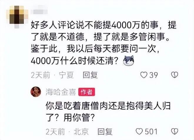 关于李亚鹏负债被执行,妻子海哈金喜却很乐观,她怒怼网友多管闲事,看起来心态不错。