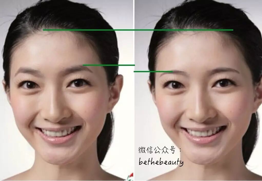 当然,可以作为特色并不代表不需要微调——在之前的没看过这篇,别说你了解你的脸(三庭篇)!中我们说过,可以通过眉毛的高低和形状来调节上庭的长短:
