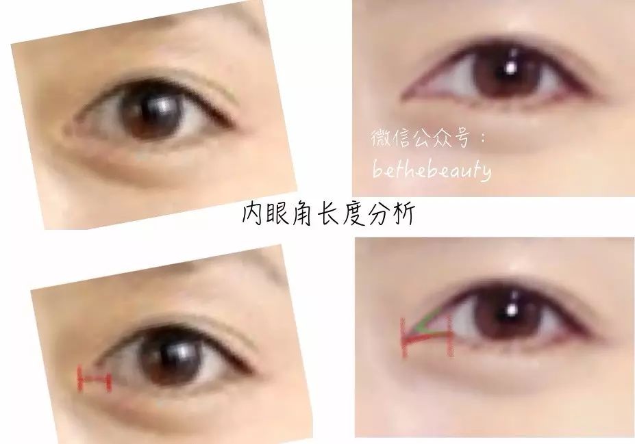 ▲红线是眼头到内眼角的长度,可以看出整个内眼角向内了不少,并且形状变尖了