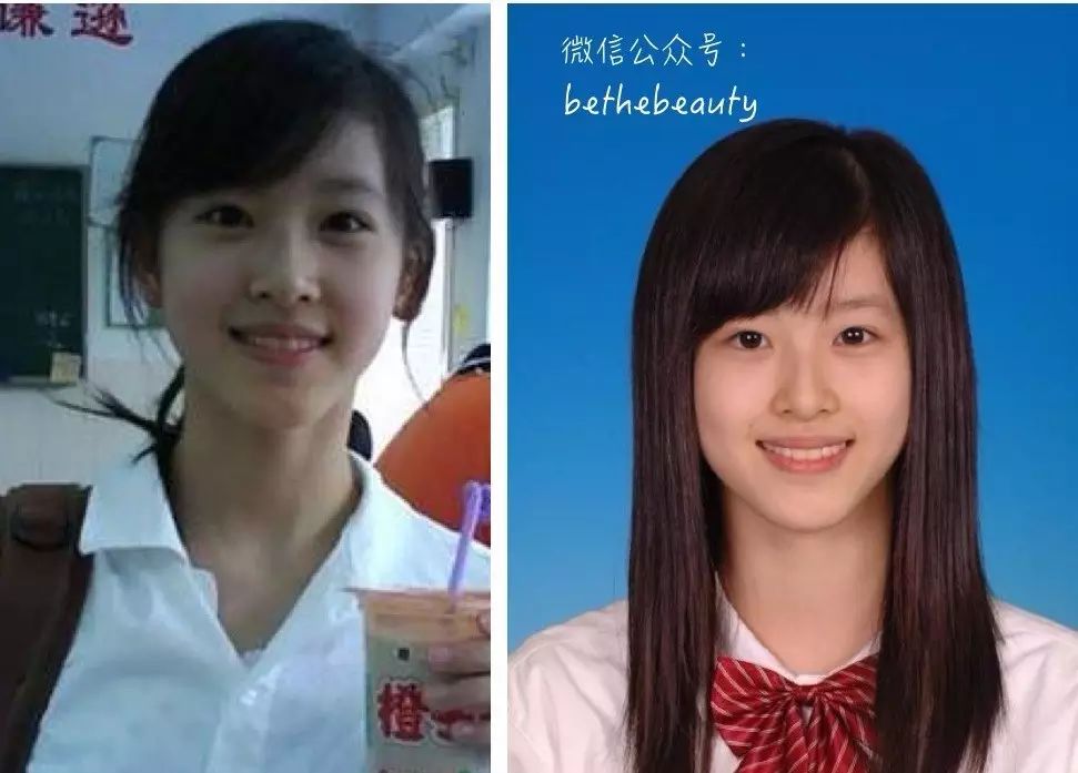▲眼尾是下拉了,但是并没有起到楚楚可怜的作用。客观的说,虽然这两张都是黑长直并且是清纯挂的衣服,但你要跟我说这是高中&大学时代的校花我是一定不信的。