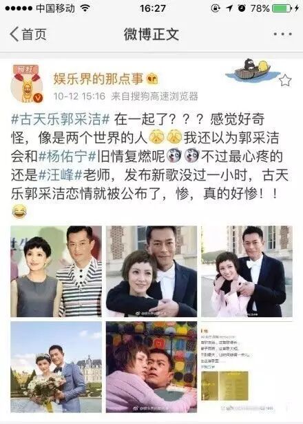 所以今天看到微博上赫然醒目的:古天乐郭采洁在一起
