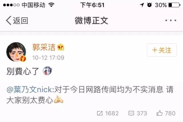 不过,郭采洁已经发微博辟谣,证明两人在一起的消息不属实。