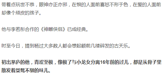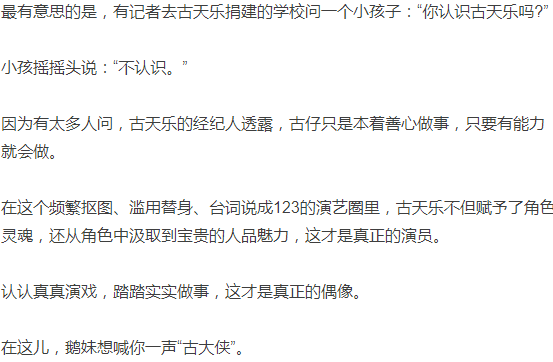 如果不是有剧组无意发现他捐建的学校,谁知道杨过的“侠之大者,为国为民”竟被古天乐演活了。