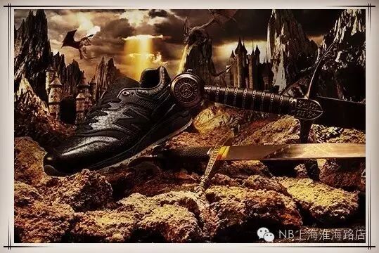 设计灵感来源:鞋款设计方面运用金色漆皮将997.5塑造成电影主色调的金色,呼应了电影中冷酷惨烈的悲情美感!此外,鞋墊位置的青龍偃月刀也與電影中的橋段相當的吻合。