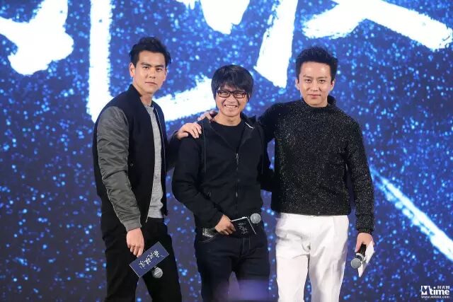 《乘风破浪》发布会上的导演韩寒与主演彭于晏、邓超