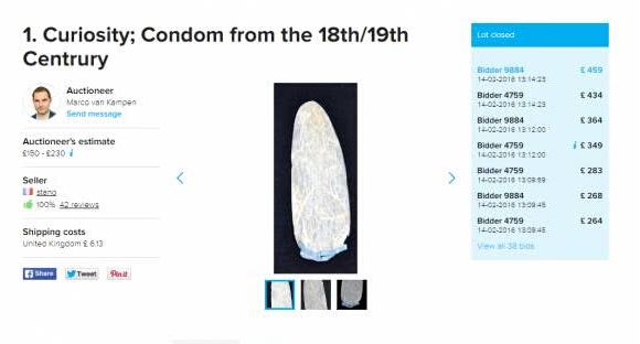 ▲200年前用羊肠制作的避孕套,在欧洲拍卖网站tawiki上,以预估2倍的价格472英镑被拍走