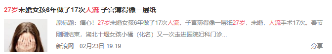 ▲半年前这则新闻刷屏。(点此回看:《未婚6年第17次流产,她这样不爱惜自己,妈妈该有多心疼》)我不觉得猎奇,不觉得应该轻贱嘲笑当事女孩的不检点,而是深深惋惜她缺失的东西太多,最欠缺的就是一直没有明白如何去爱自己