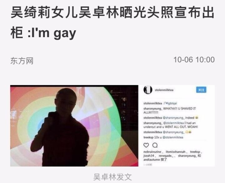 成龙的女儿吴卓林出柜了!发了一条ins: