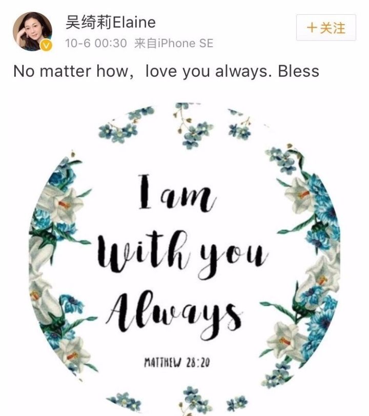 成龙暂时还没对女儿的出柜表态,不过昨天是国际出柜日,吴绮莉再次发声:
