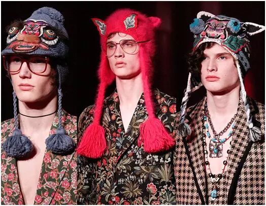 2016 秋冬秀场各大品牌不约而同的出现大量帽款设计,Gucci 的虎头帽将我们带回了童年,哪个 80 后的童年没戴过它。
