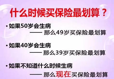 如果你知道明天你要发生意外,今天办就合适;如果你知道在50岁会发生医疗费用,你49岁办最合适。如果你不知道你什么时候会发生这些情况,那么现在办理最合适!因为一旦发生,一切就都晚了,为什么不提前准备好呢!请记住:医生只能救一个人的生理生命,却不能救一个人的经济生命。