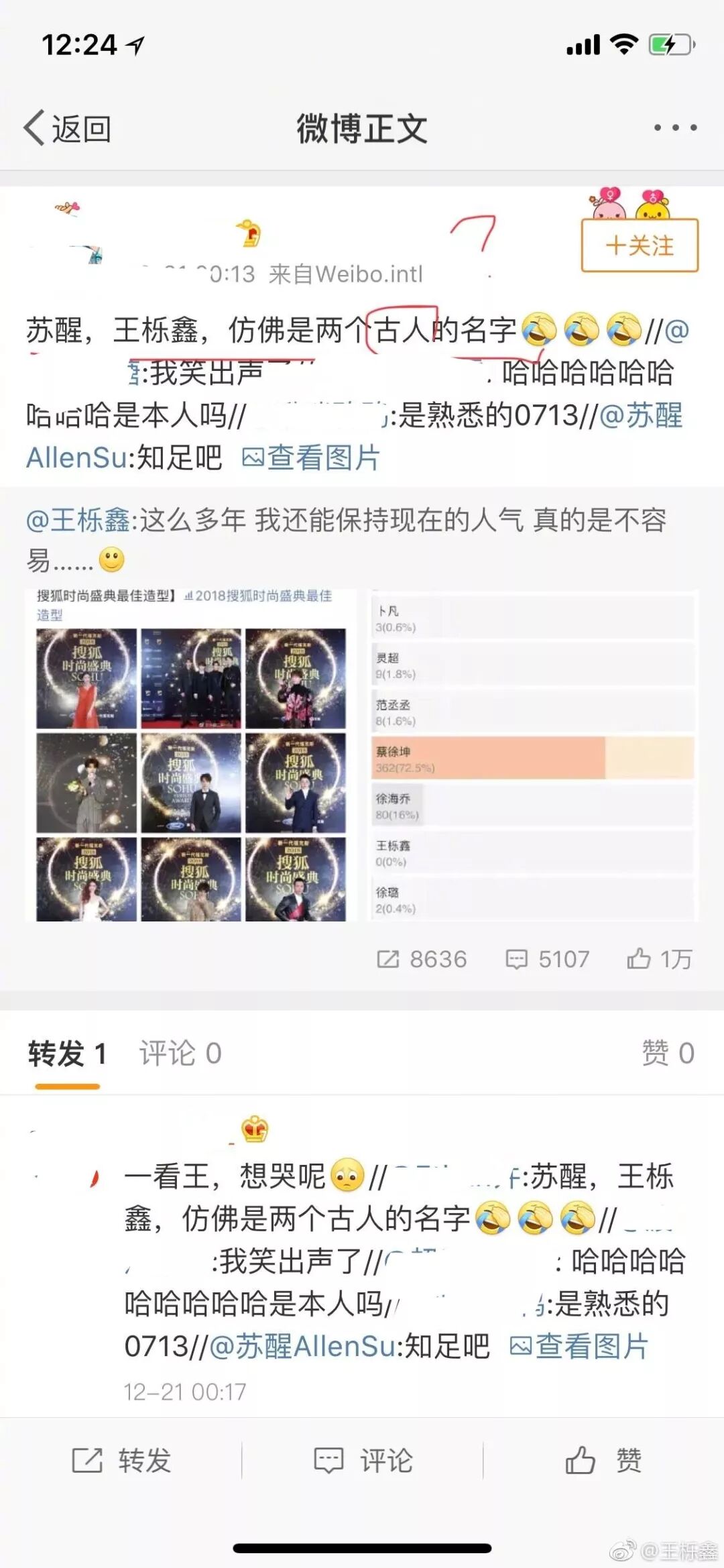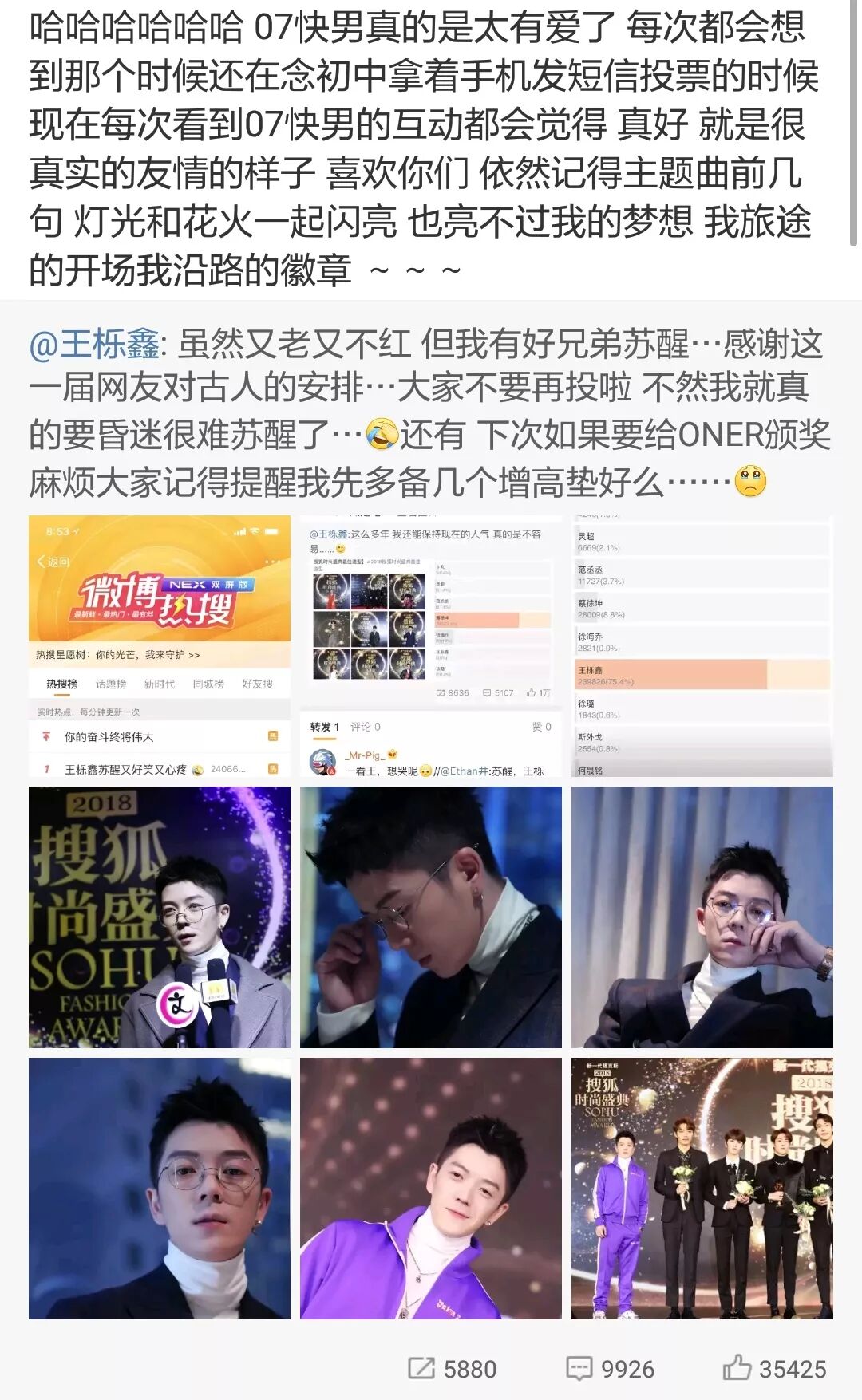 得知这一最新战况后,王栎鑫发了则微博感谢各方人士的支持,还特别提到了给他“声援”的好兄弟苏醒。