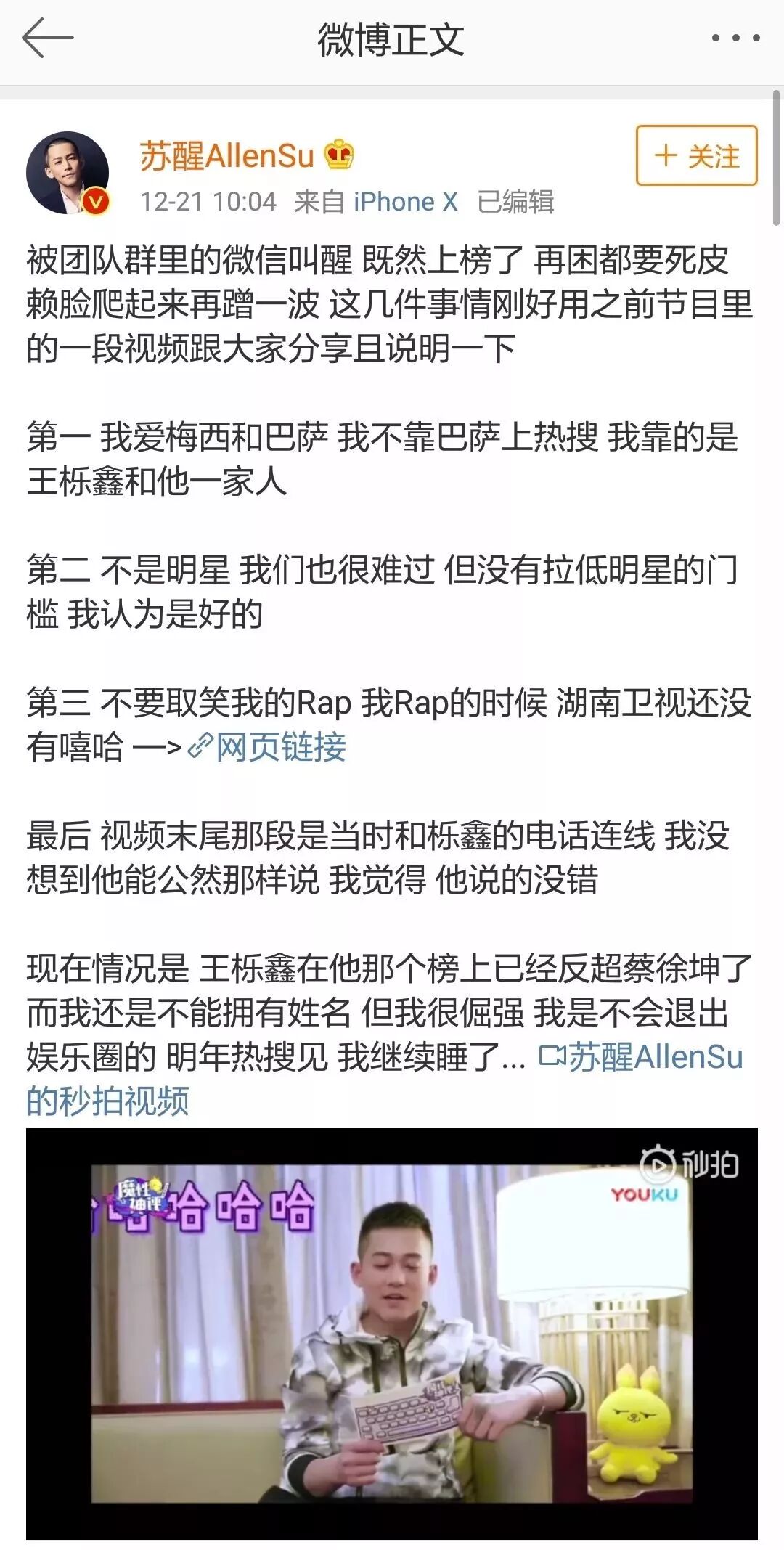 而在王栎鑫发出那则微博后不久,我们的另一位主角——苏醒闪亮登场了!