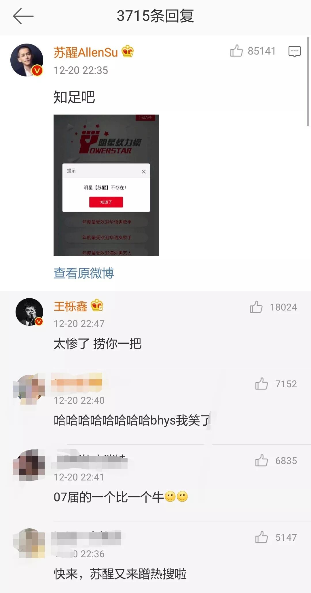 然后,有人去查了一下那个明星权力榜上有没有王栎鑫的名字,结果......