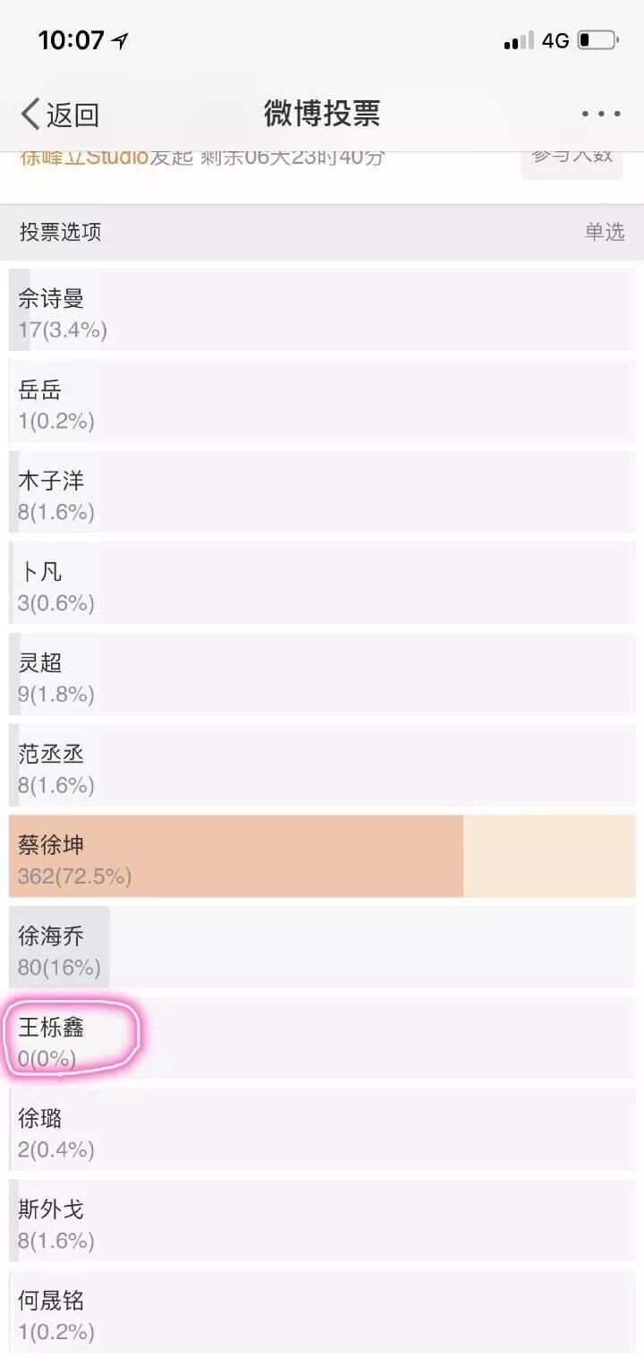 估计热心网民王栎鑫先生也是无意间刷到了这么一个和人气关系颇大的投票,点进去投了票之后才发现了这么一个让他能深刻感受到自己人气水平的残酷事实吧。