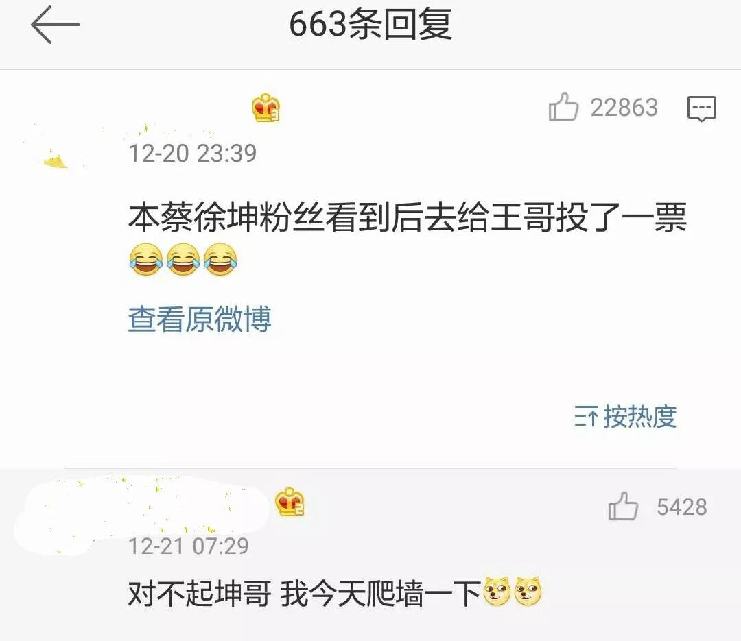 不少蔡徐坤的粉丝看到那则微博之后都表示:不要哭,站起来,我们给你投一票!