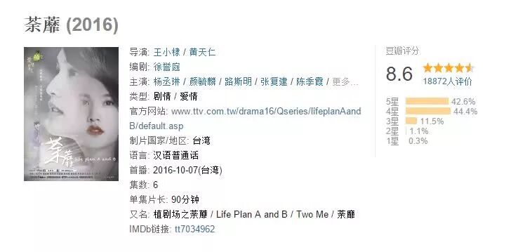 荼蘼=two me,两个平行时空的人如何选择自己的人生。不再是扮可爱,不再是夸张的形象,杨丞琳在这里变成职场女性和家庭主妇。在工作还是爱情这个世纪难题下的摇摆不定给了观众莫大的共鸣。
