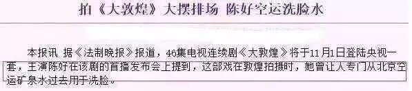 至于去年金星在《金星秀》里说的那位,其实挺久远的了,要追溯到10年前,她叫陈好。陈好的演艺生涯履历挺丰富多彩,成就也颇高,现在是中国电视艺术家协会演员工会副会长。她也有耍大牌的时候,不过是她自己公布的。2005年她在敦煌拍摄《大敦煌》时,曾让工作人员从北京空运矿泉水过去洗脸、洗澡。