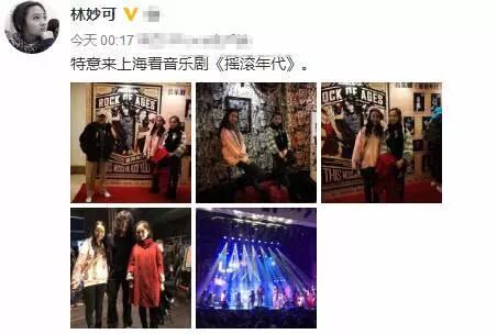 林妙可晒照说:特意来上海看音乐剧《摇滚年代》。看来这个音乐剧对林妙可的吸引力还是非常大的,不然不会大半夜了还去看音乐剧!