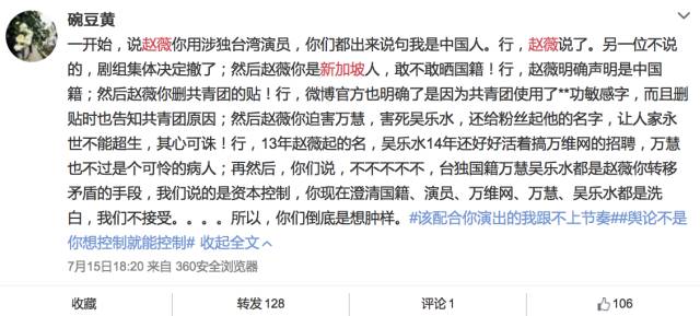 然后好死不死,赵薇竟然在7月11日发了长微博,澄清自己是中国人。
