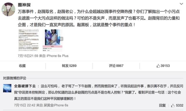 而且一开始“赵薇”两个字是每天在热搜上的,不上热搜的只是网友们所谓的“赵薇事件”,因为那时候还是有很多理智的人根本不觉得这是个事件。