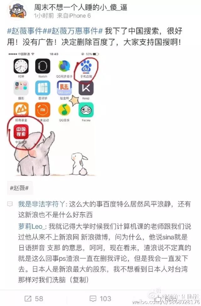7月14日晚上,除了“赵薇 万惠”、“乐水”飙上了微博热搜外,还有一个关键词,“中国搜索。”