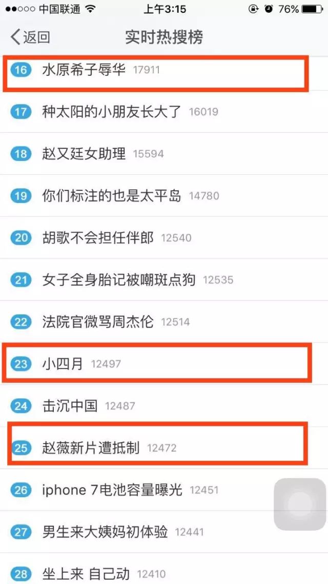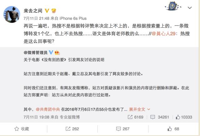 共青团误导的“赵薇公关删帖”前面已经解释过了,咱们来说为啥“一开始赵薇事件就是上不了热搜”。