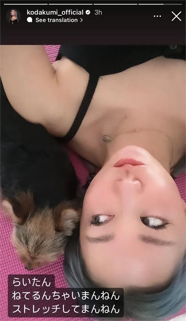 近日,倖田来未忙着自己的巡回演唱会事宜,4月9日抽空出来的她又在Ins上Po出自己做瑜伽的照片, 只见她躺在瑜伽垫上做伸展运动,她的爱犬一起跟她趴一起。只见倖田来未身穿黑色细带小背心,十分诱惑!而且脸上没有了在舞台上的浓妆艳抹,只剩下一张干净纯粹的脸孔,即使不化妆,整个状态也非常有神,而且不只是拥有冻龄脸蛋,还拥有着超神的身材,这种火辣好身材网友看得目不转睛。