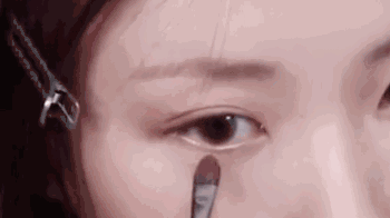 用大地色晕染上下眼皮,尤其要注意下眼影的描画。