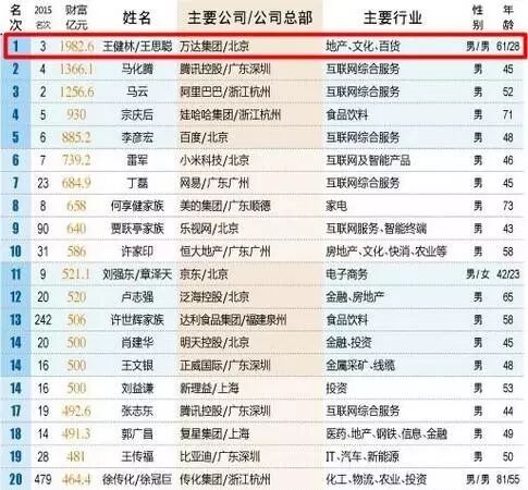 ►王思聪和老爸王健林并列大陆500富人榜第一位。