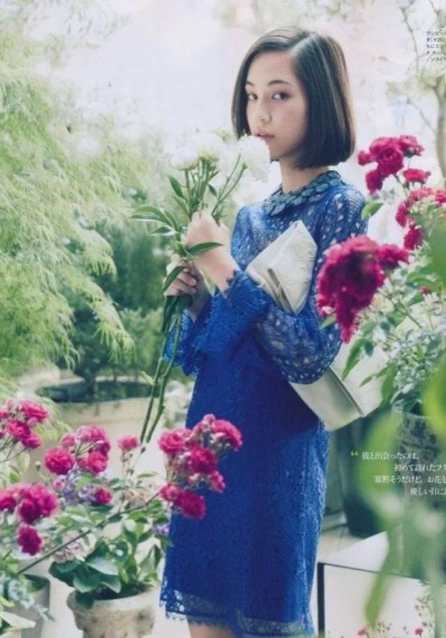 平面模特出身的水原希子刚出道时常常为一些少女杂志拍摄照片,那时的她就已经迷上了中短发。清新的齐肩长度,棕色染发色,纯美的妆容,甜美乖巧惹人爱。