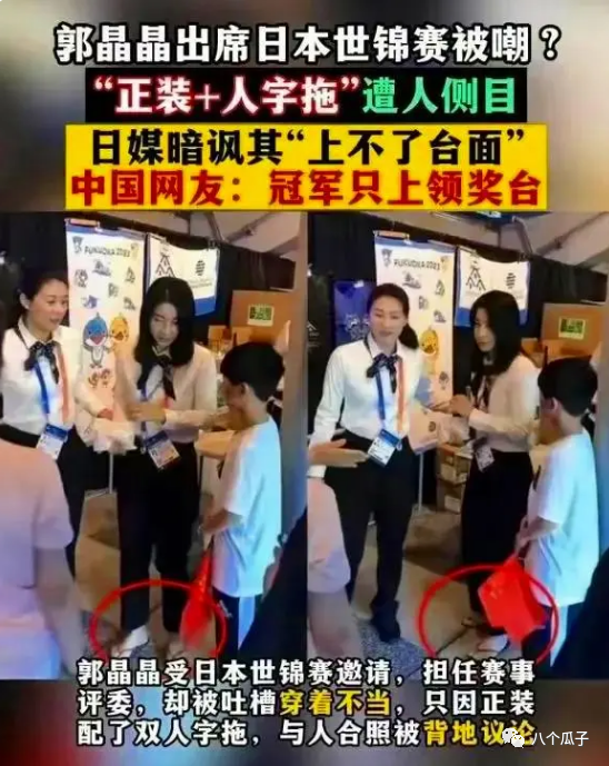 这样的争议实际上涉及了不同文化背景下的观念差异。在一些国家,人字拖可能被视为休闲、舒适的鞋履,常常在非正式场合穿着,但在另一些国家,特别是日本这样非常注重礼仪的国家,人字拖被认为是不得体的、不符合正式场合的着装规范。因此,郭晶晶的穿着在日本社会引发了一些不适感。