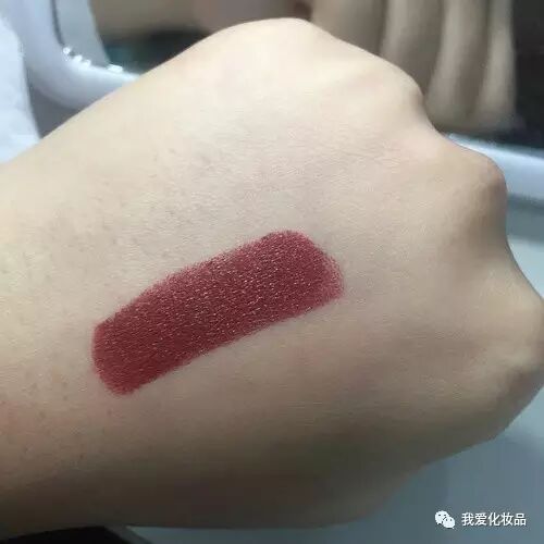 算是一个牛血色?比较深红,配大衣真的很美啊?有种冰冷的感觉,图里是涂了润唇膏的,没有那么润,具体看手上的试色。