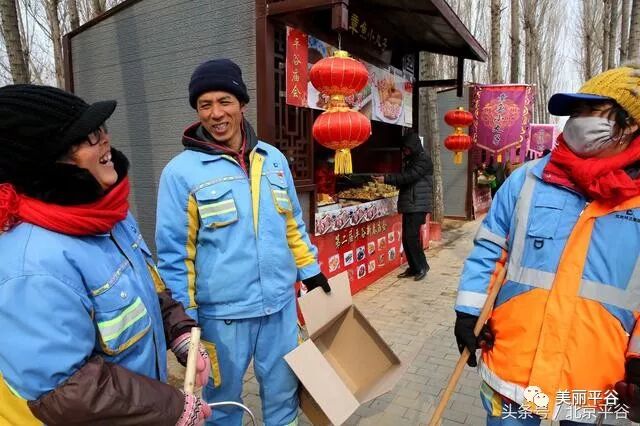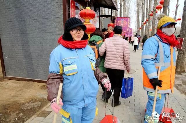 尽管天气寒冷、下班没保障,清扫任务又比平时重,可当大伙听见游客说“平谷庙会真干净”时,来自马昌营村的张大哥和两位同事姐妹开心得笑了。