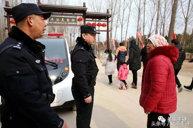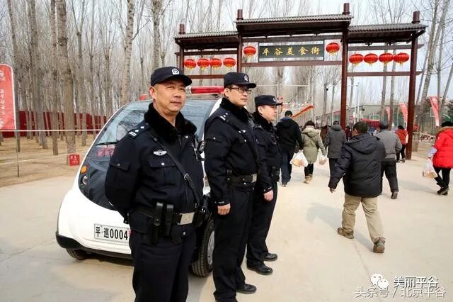 庙会上始终神经紧绷的要数在岗执勤的平谷公安分局的200多位民警了。他们分布在800多亩园区的16个主题区。要不停巡视、引导游客,还要为出状况的游客提供帮助。
