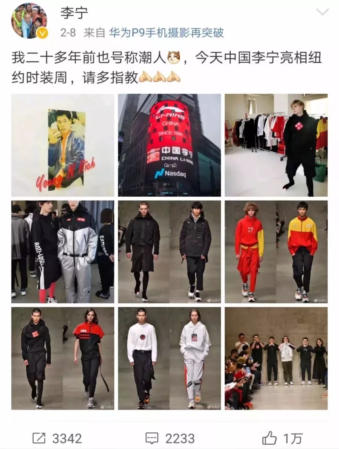 发出中国李宁亮相纽约时装周的消息时