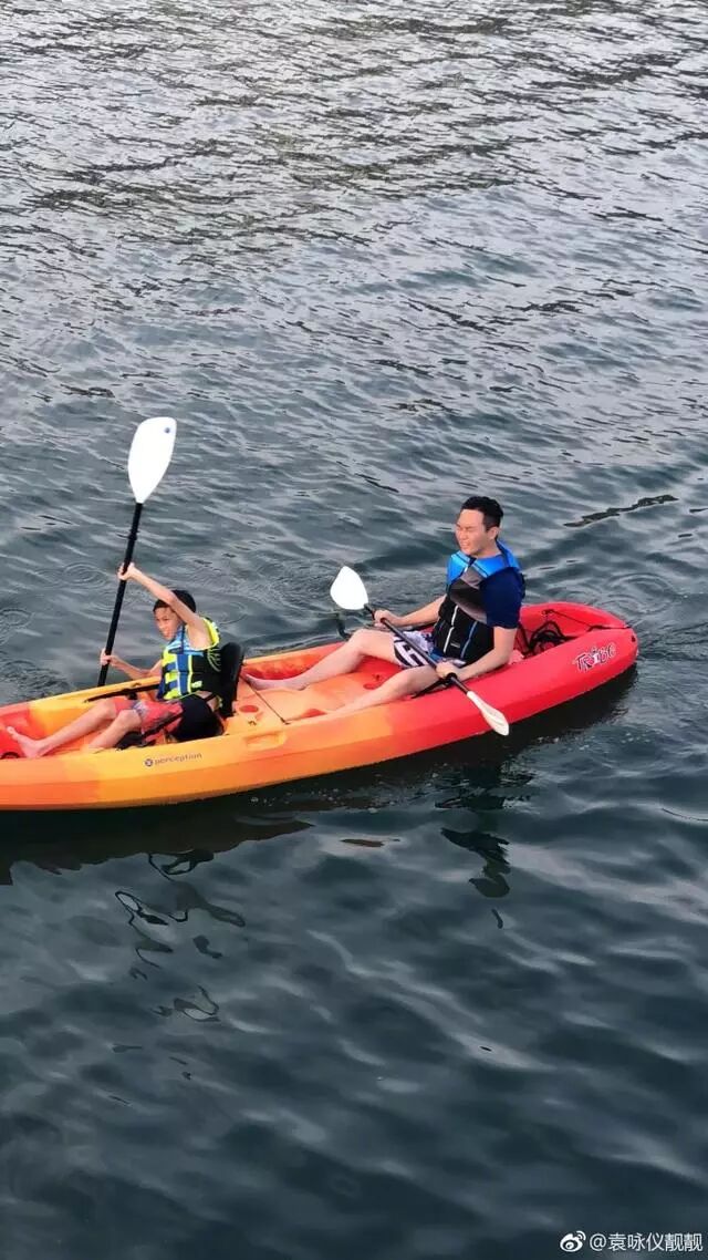 五一假期,一家三口来了一次海上划浆游玩,玩得超开心。袁咏仪分享了父子俩海上的游玩照。父子俩在小船上一前一后,穿着救生衣,在烈日下开心卖力的划浆,画面超温馨。