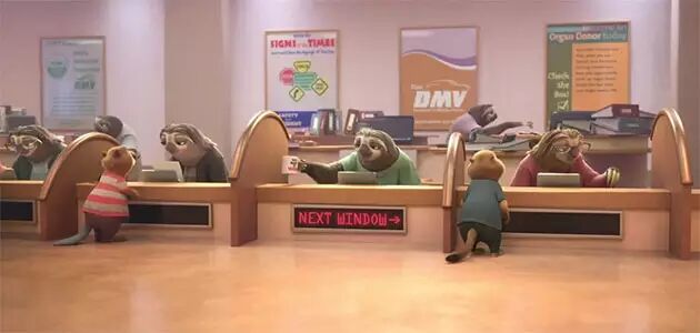 还有,全片搞笑担当的树懒,其实另一个作用是用来讽刺办事效率低下的DMV(美国车辆管理局)的。