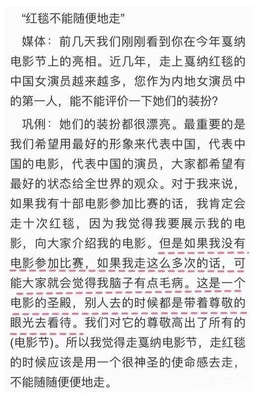 于是,在国际影坛有资深地位的巩皇就怒了,说没作品还走红毯,是不是脑子有病?