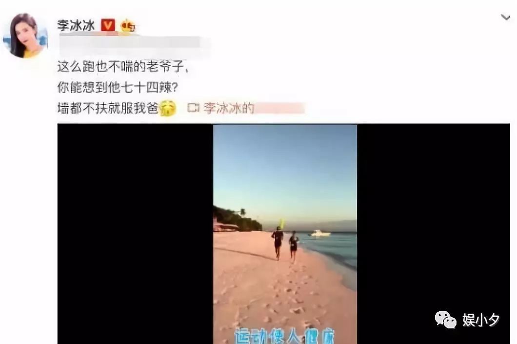看到老爸这年轻有力的样子,而且跑步都不带喘的,李冰冰也忍不住调侃起老爸来:“这么跑也不喘的老爷子,你能想到他七十四啦?墙都不扶就服我爸!”也真的是很有意思了,也祝福李冰冰一家人的生活能够一直幸福美满,希望老爷子能一直充满活力。