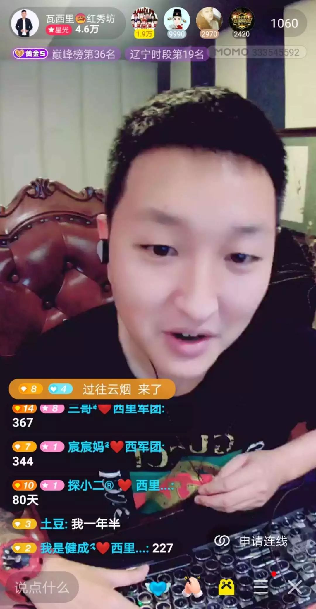有一个粉丝在直播间吐槽,陌陌有个统计的说,自己看的最多的主播是瓦西里,然后陌陌系统总结出来的是这个粉丝喜欢看颜值主播,西里表示没毛病!自己就是颜值主播!