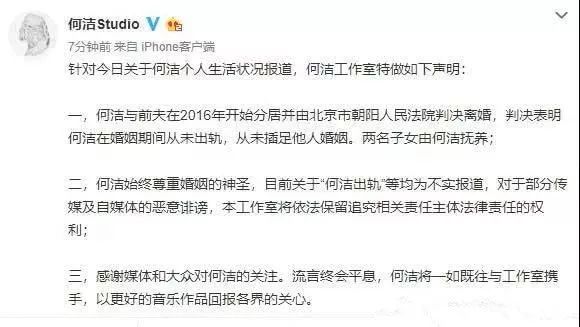 工作室也强调称目前关于“何洁出轨”等均为不实报道。