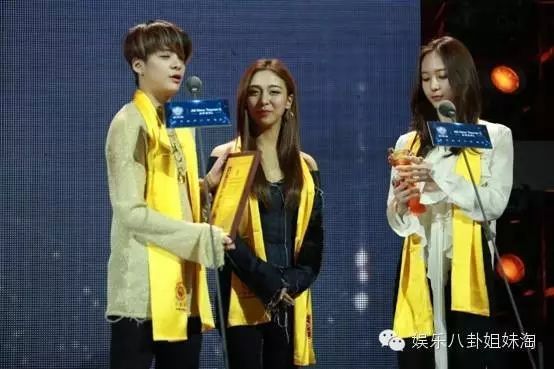 当日F(X)队长宋茜因主演的电影《我的新野蛮女友》正在紧锣密鼓的宣传中未出席颁奖典礼。成员刘逸云Amber代表全队发表获奖感言:感谢粉丝,支持她们的观众,会继续努力的。随后的表演,劲歌热舞。high翻全场。