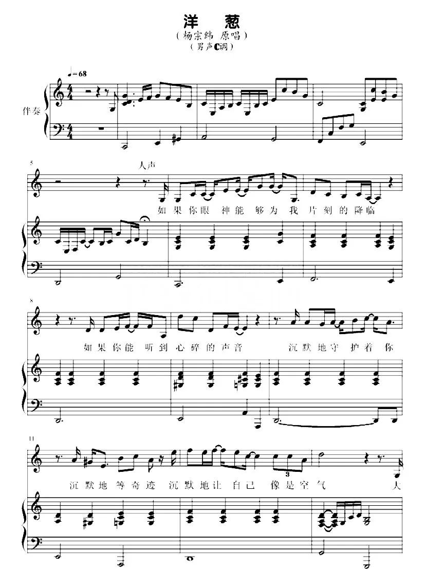 《洋葱》歌词&乐谱
