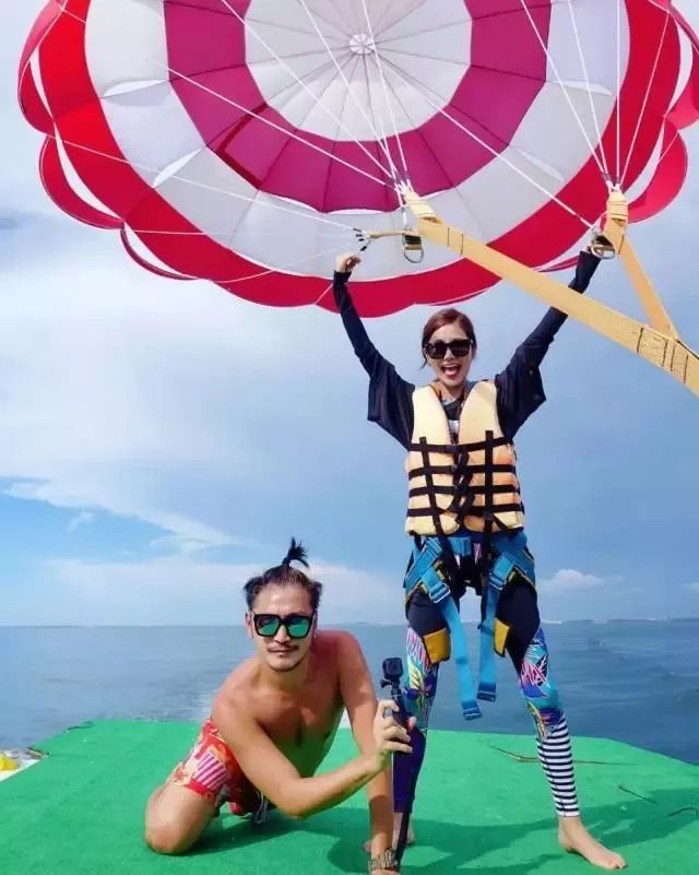 还不断尝试各种运动方式,夜跑、骑行、滑板,冲浪、跳伞、游泳。