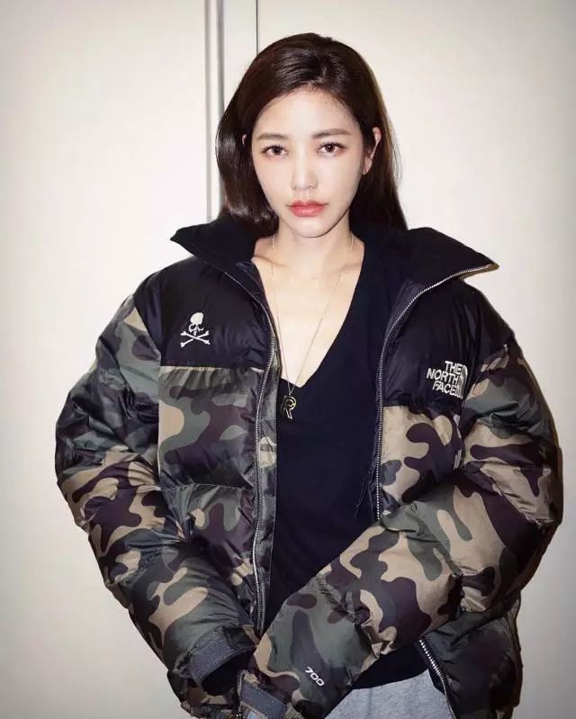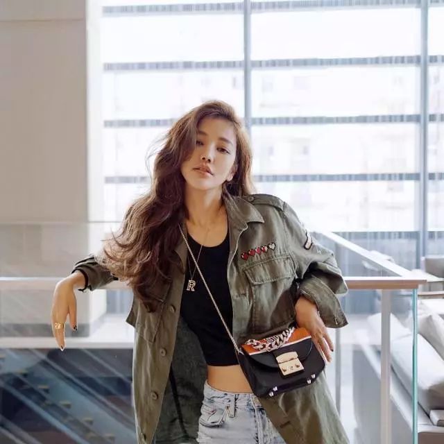 迷彩短外套和绿色夹克怎么搭配都很惊艳,前者黑色V领内搭点缀小细项链,甜辣恰到好处。