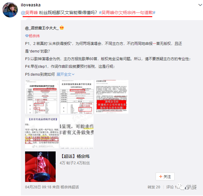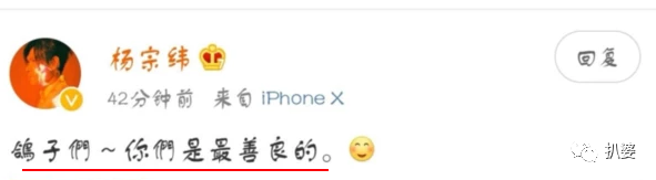 但这一切完全不妨碍杨宗纬粉丝们最世界上最善良最可怜的爱豆维权。